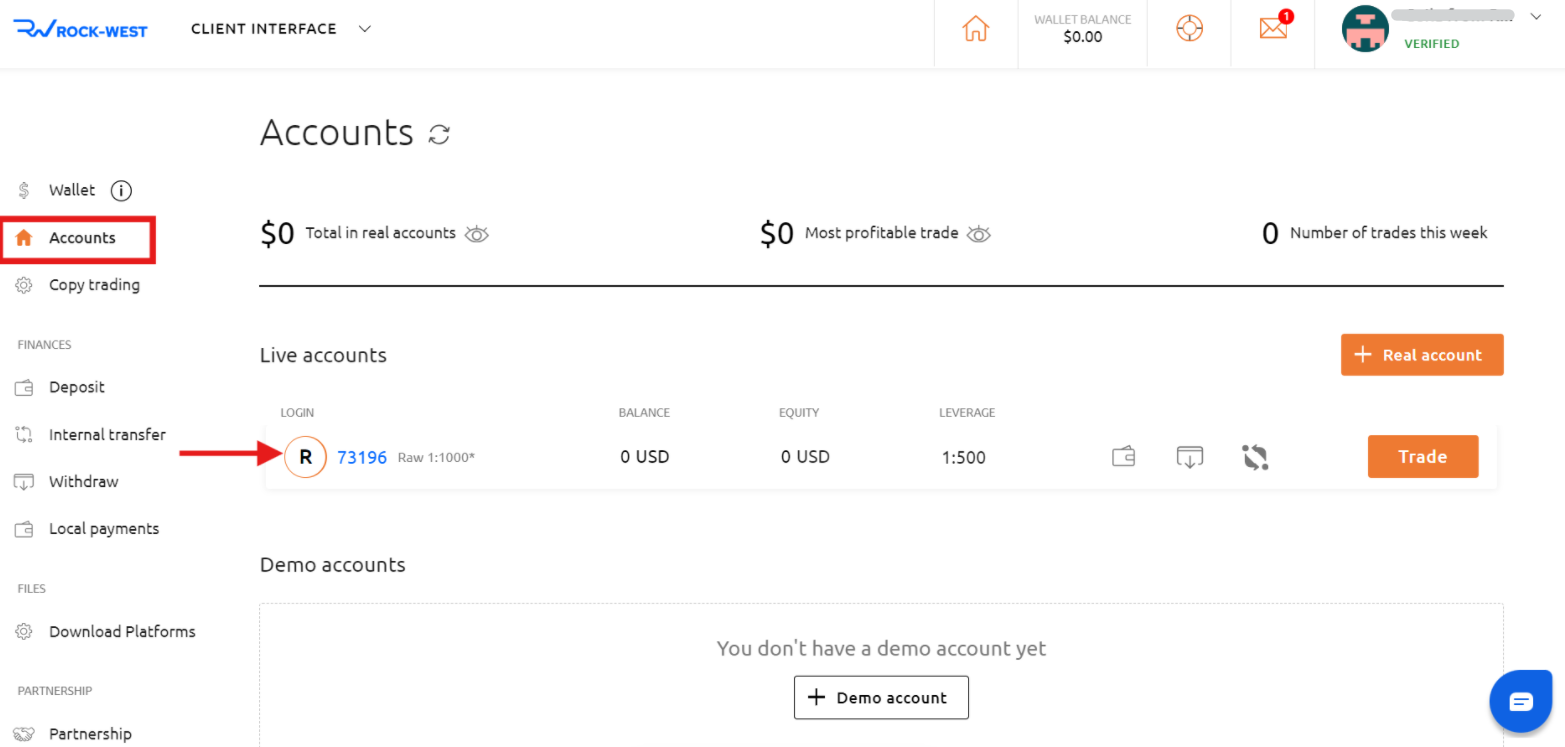 Open a New Account - Click on the “Real Account” button to initiate the process of opening a new account.